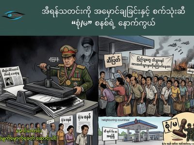 အီရန်သတင်းကို အမှောင်ချခြင်းနှင့် စက်သုံးဆီ “စုံ/မ” စနစ်ရဲ့ နောက်ကွယ် /March 5, 2026 8:45 pm/မျက်မှောက်ခေတ် မောင်ကောင်း (မျက်မှောက်ခေတ် ဆောင်းပါး) စက်သုံးဆီကို “စုံ/မ” နံပါတ်အလိုက် ကန့်သတ်မောင်းနှင်ရမယ်ဆိုတဲ့ ထုတ်ပြန်ချက်ဟာ ကျွန်တော်တို့ကို စနစ်ဟောင်းကြီးဆီ ပြန်ခေါ်သွားတာတင်မကပါဘူး။ ရန်ကုန်တက္ကသိုလ်ရဲ့ “ဂုဏ်ထူးဆောင် ပြည်သူ့ရေးရာစီမံခန့်ခွဲမှု ပါရဂူဘွဲ့” ရ ဒေါက်တာကြီးရဲ့ စီမံခန့်ခွဲမှု ဘယ်လောက်အထိတောင် ကျရှုံးနေပြီလဲဆိုတာ... Read More