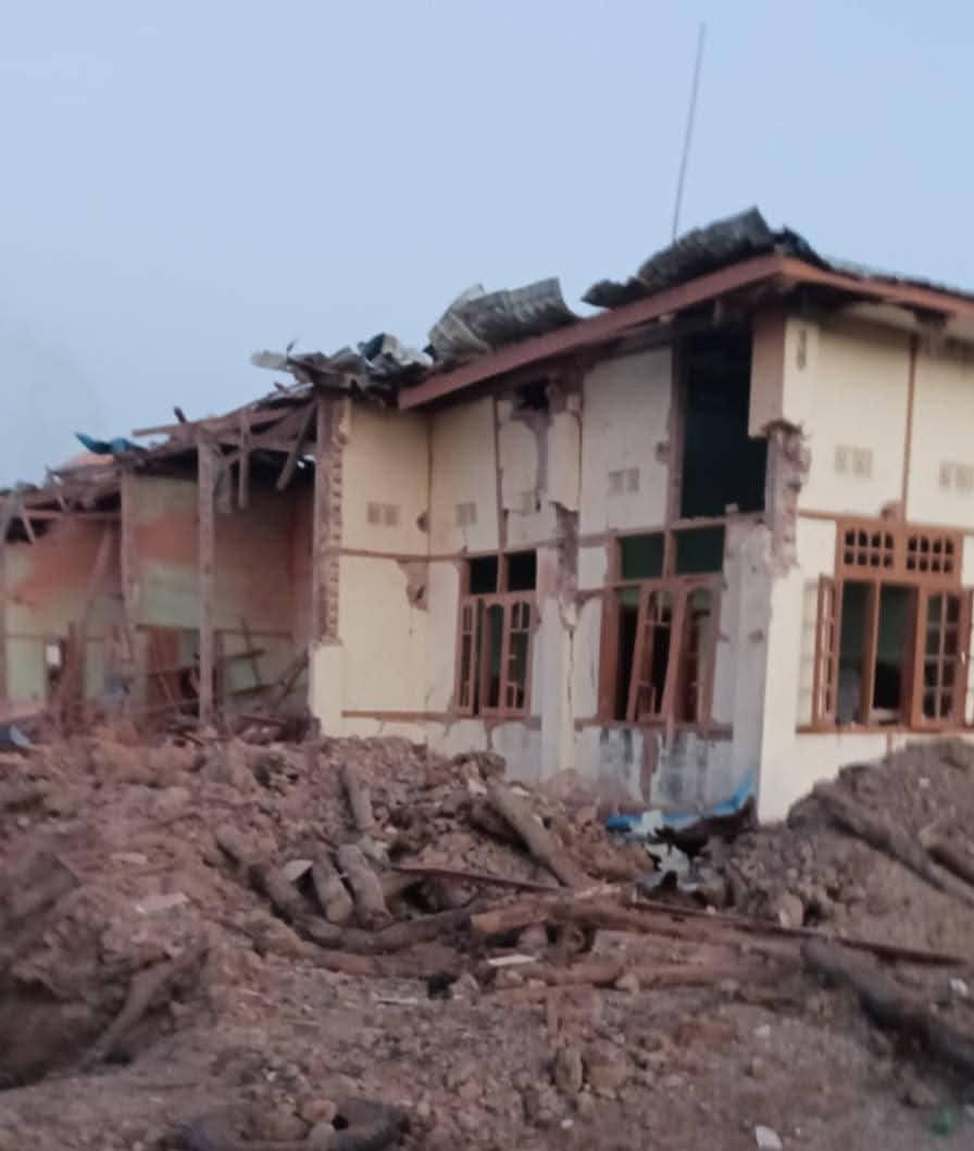 ပုံစာ – စစ်ကိုင်းတိုင်းထဲက မြို့နယ်တခုမှာလေကြောင်းတိုက်ခံရတဲ့နေရာ။(ဓာတ်ပုံ – Indaw Revolution -IR)