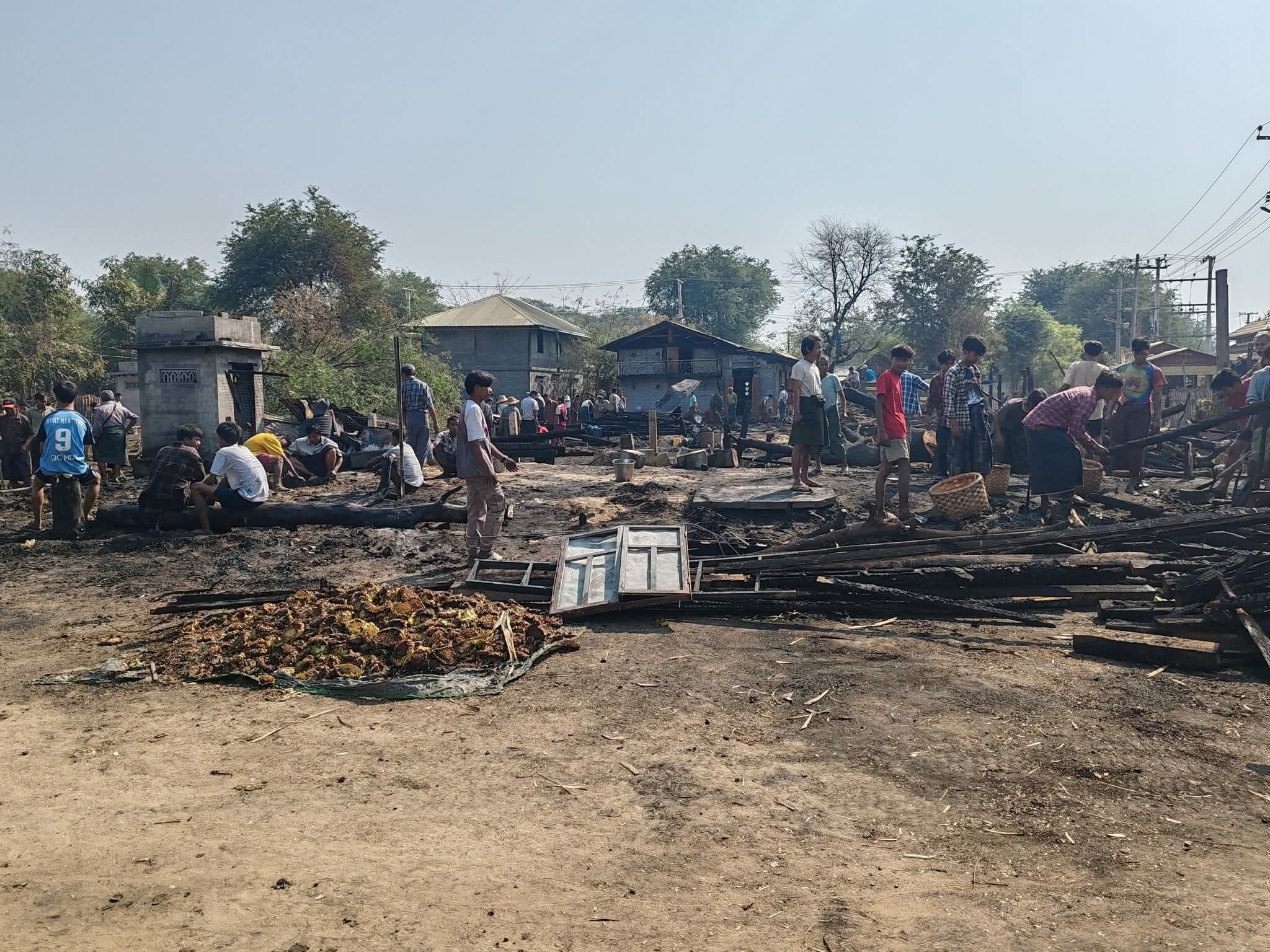 ပုံစာ -ပုလဲမြို့နယ်မှာ မီးလောင်ပျက်စီးသွားတဲ့ လူနေအိမ်များ။ (ဓာတ်ပုံ – ပြည်သူ့အုပ်ချုပ်ရေးအဖွဲ့ပုလဲမြို့နယ်-ပုံဟောင်း)