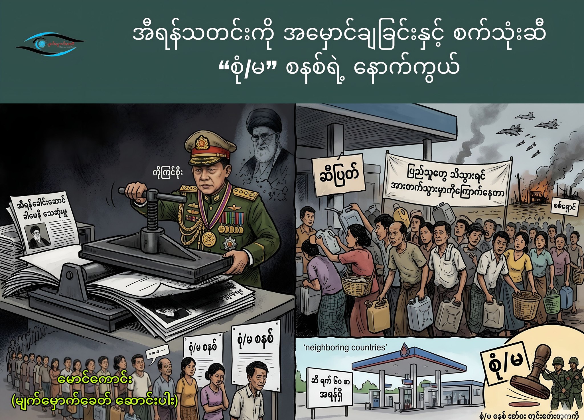 ပြီးခဲ့တဲ့ ဖေဖော်ဝါရီ ၂၈ ရက်နေ့မှာ အမေရိကန်နဲ့ အစ္စရေးတို့ရဲ့ ပူးတွဲစစ်ဆင်ရေးဟာ အီရန်ခေါင်းဆောင် ခါမေနီ သေဆုံးတဲ့အထိ ပြင်းထန်ခဲ့ပါတယ်။ ဒါဟာ ကမ္ဘာ့အကြီးဆုံးသတင်းပါ။ ဒါပေမဲ့ မြန်မာ့အလင်းနဲ့ ကြေးမုံလို ဝါဒဖြန့်သတင်းစာတွေမှာ ဒီသတင်းကို လုံးဝ မဟရဲကြဘူး။