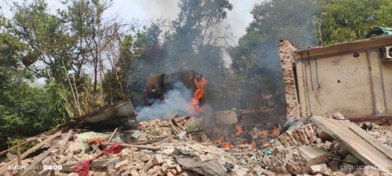 Photo – လေကြောင်းတိုက်ခိုက်ခံခဲ့ရပြီး ဆူးလေကုန်းရွာမြင်ကွင်း။