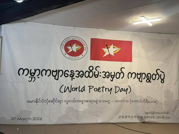 ကမ္ဘာ့ကဗျာနေ့ အခမ်းအနားမှာ ကိုရီးနိုင်ငံရောက် မြန်မာ ကဗျာဆရာတွေ၊ ကဗျာ ချစ်သူတွေက ကဗျာရွတ်ဆိုခဲ့ကြပြီး ပြည်တွင်းက ကဗျာဆရာတွေကလည်း Zoom မှ တဆင့် ကဗျာရွတ်ဆိုခဲ့ကြတယ်လို့ သိရပါတယ်။