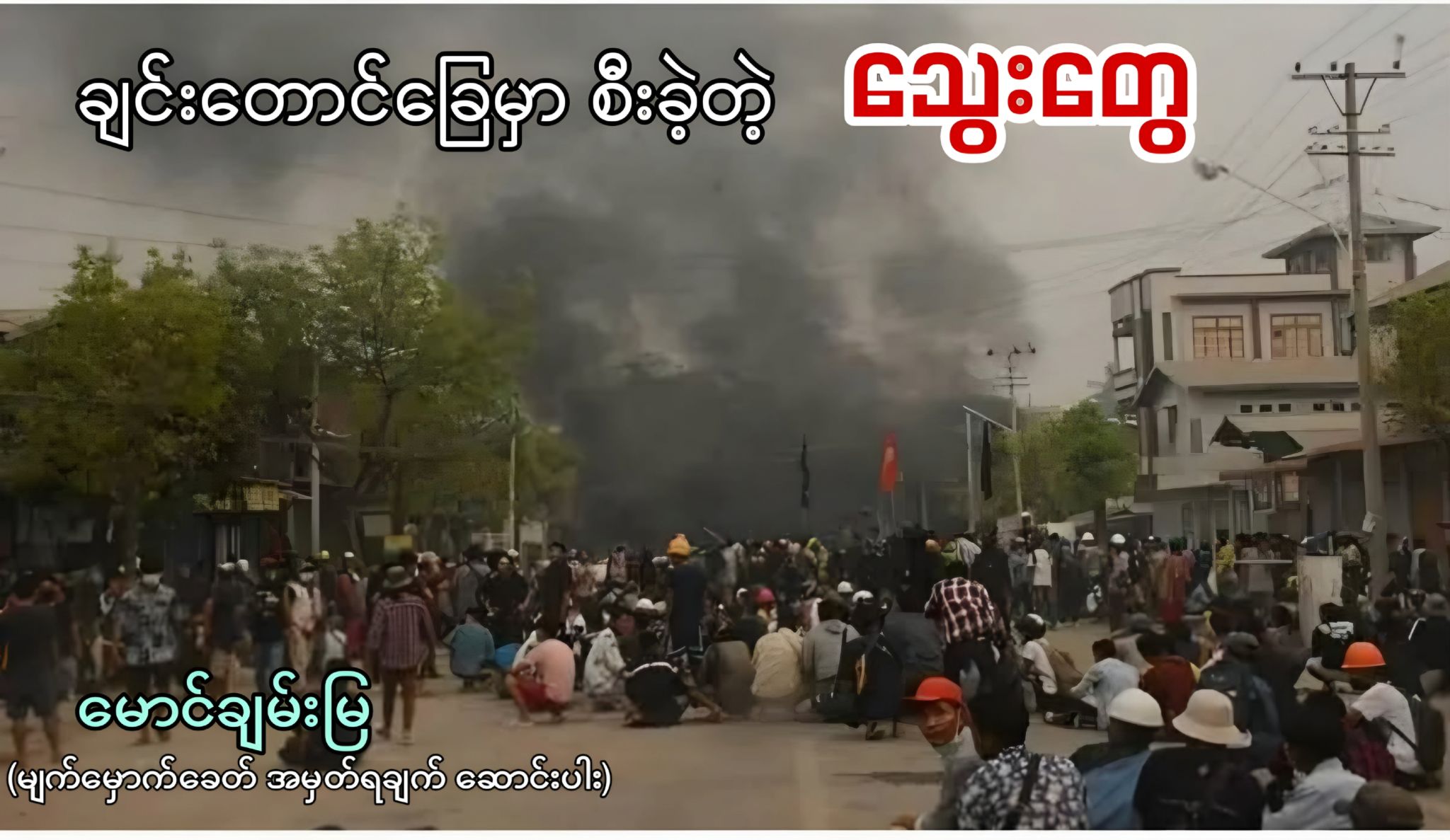 ၂၀၂၁ ခုနှစ်၊ မတ်လ ၂၈ ရက်နေ့။ နေ့လယ်နှစ်နာရီဝန်းကျင်မှာ တာဟန်းဘက်မှာ ပစ်ခတ်သံတွေကြားရသည်။ တာဟန်းသပိတ်ခံတပ်ကို ပစ်နေပြီ။ စစ်ကားတွေ မြို့အရှေ့မှ အနောက်သို့ တဝီဝီသွားကြသည်။ တာယာတွေယူခဲ့ကြဟေ့။ ကလေးတွေရော၊ အဖိုးကြီး၊ အဖွားကြီးတွေပါ မကျန် ကားတာယာဟောင်း၊ ဆိုင်ကယ်တာယာဟောင်းတွေ သယ်ပြီး လမ်းပေါ်ထွက်လာကြသည်။ ကားလမ်းပေါ်မှာ တာယာတွေမီးရှိူ့ပြီး စစ်ကားတွေကို ရပ်ကွက်တိုင်းက တားကြသည်။