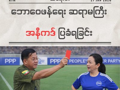 ၂၀၂၆ ခုနှစ် ဇန်နဝါရီလ ၁၅ ရက်နေ့ စာရင်းအရ သတင်းမီဒီယာသမား ၂၇ ဦးအကျဥ်းထောင်တွေထဲမှာ အကျဥ်းကျခံနေရဆဲဖြစ်ပြီး အဲ့ဒီထဲမှာအမျိုးသမီး ၅ ဦး ပါဝင်တယ်လို့ လွတ်လပ်သောမြန်မာသတင်းမီဒီယာကောင်စီ (IPCM)က ဒီကနေ့မှာ ထုတ်ပြန်ပါတယ်။ ထိုသို့အကျဉ်းချခံထားရဆဲ သတင်းမီဒီယာသမား တွေထဲမှာ ထောင်တစ်သက်အပါအဝင်... Read More